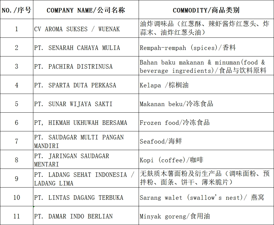 附:印尼供应商名单
